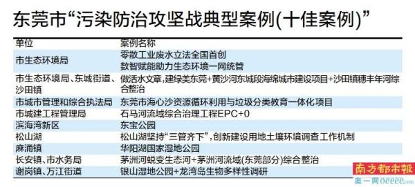 据介绍,2023年底,东莞市环委办在全市范围内开展污染防治攻坚战典型案例征集及宣传活动,选树一批先进典型和优秀案例,探索构建一批可复制推广的模式经验,更好地发挥典型示范和价值引领作用。来自全市各镇街(园区)、相关职能部门一共报送了52个建设项目。经过专家组两轮评审,最终评选出10个“十佳”案例、10个优秀案例。