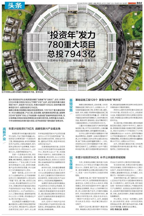 重大项目是经济社会高质量发展的“加速器”和“压舱石”。近日,东莞市《2024年重大项目计划》(以下简称“计划”)出炉,初步安排市重大建设项目780个,总投资7943亿元,年度计划投资1126亿元;