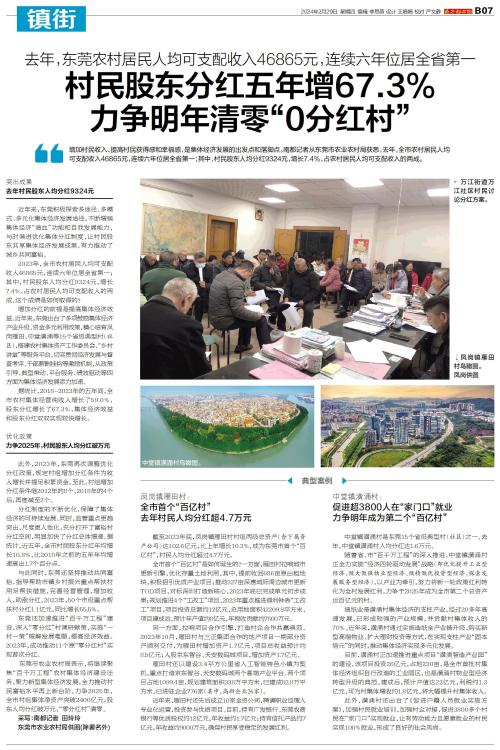 增加村民收入、提高村民获得感和幸福感,是集体经济发展的出发点和落脚点。南都记者从东莞市农业农村局获悉,去年,全市农村居民人均可支配收入46865元,连续六年位居全省第一;其中,村民股东人均分红93