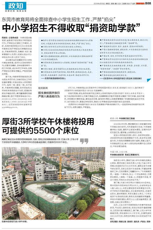 厚街3所学校午休楼将投用 可提供约5500个床位