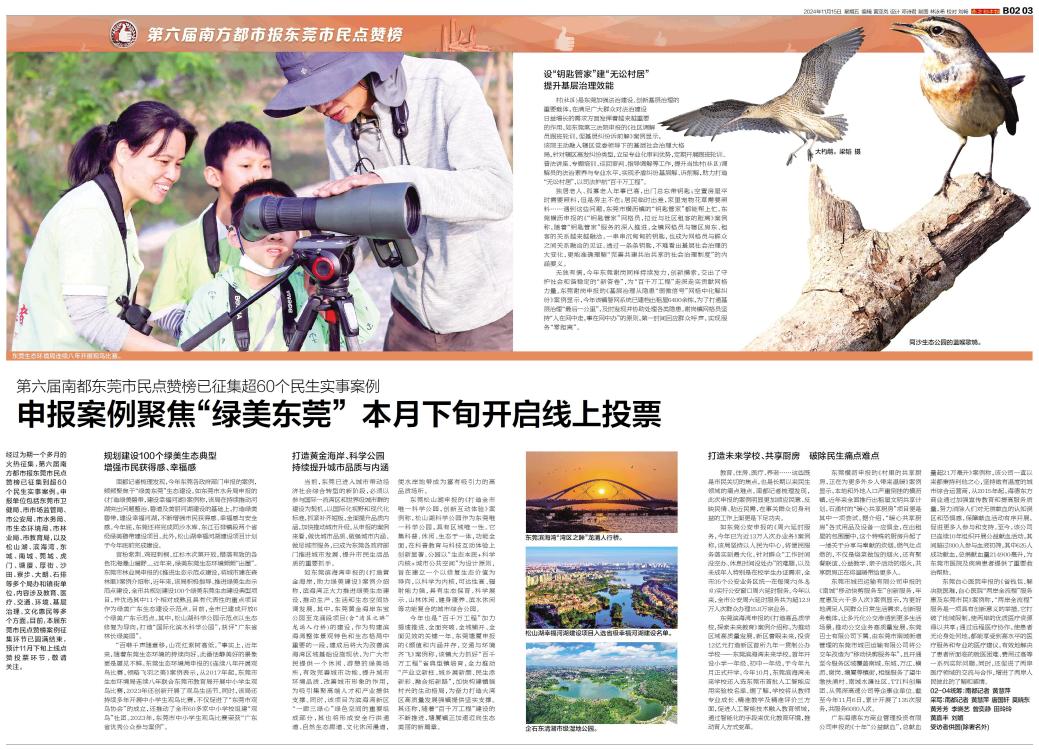经过为期一个多月的火热征集,第六届南方都市报东莞市民点赞榜已征集到超60个民生实事案例。申报单位包括东莞市卫健局、市市场监管局、市公安局、市水务局、市生态环境局、市林业局、市教育局,以及松山湖、滨