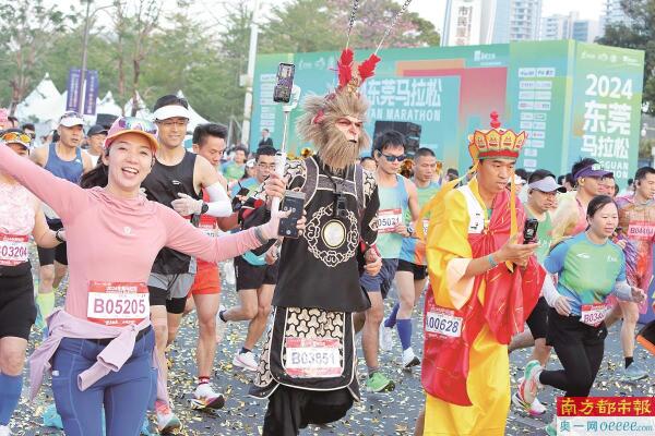 本次莞马对赛事路线进行了全面优化,不仅巧妙地串联起东莞市的文化地标和特色建筑,更在赛道上注入了丰富多彩的潮流元素——可爱的东莞烧鹅文创周边“莞小鹅”化身为“奔跑的烧鹅”,与选手们一同分享奔跑的喜悦;赛道沿线20多个文化加油站,以劲歌热舞助阵,赛道两侧观众的热情欢呼声此起彼伏,共同营造出一幅活力四溢的盛景。
