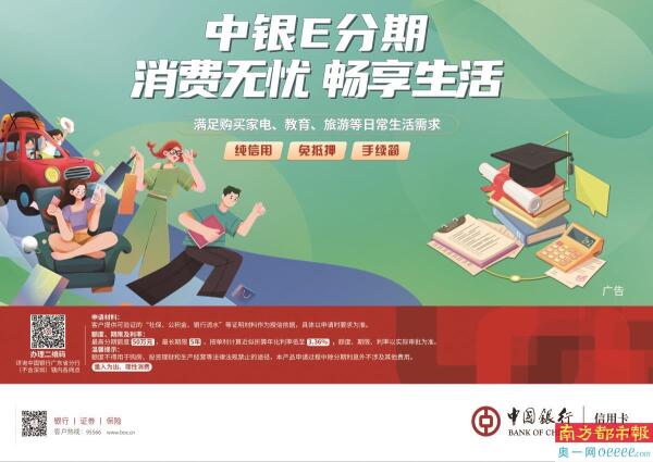 在大额消费领域,东莞中行持续推广中银E分期产品,满足消费者对家电、旅游、教育、婚庆等日常消费,分期金额最高50万元,期限最长5年,全方位满足客户的金融需求。