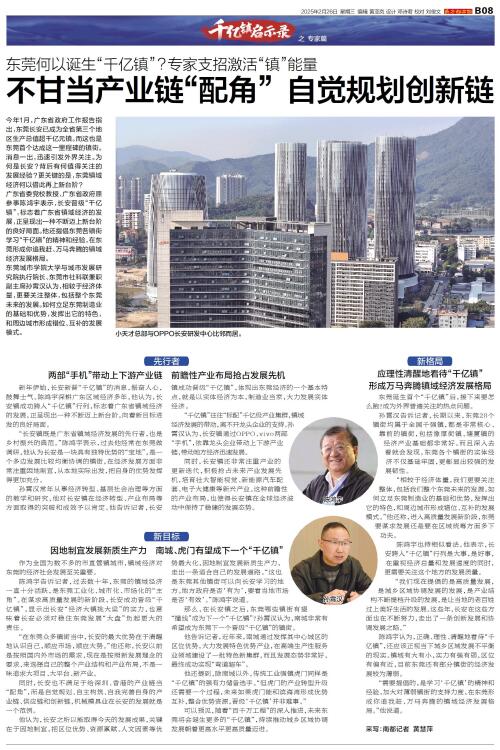 千亿镇启示录之专家篇 今年1月,广东省政府工作报告指出,东莞长安已成为全省第三个地区生产总值超千亿元镇。而这也是东莞首个达成这一里程碑的镇街。消息一出,迅速引发外界关注。为何是长安?背后有何值得