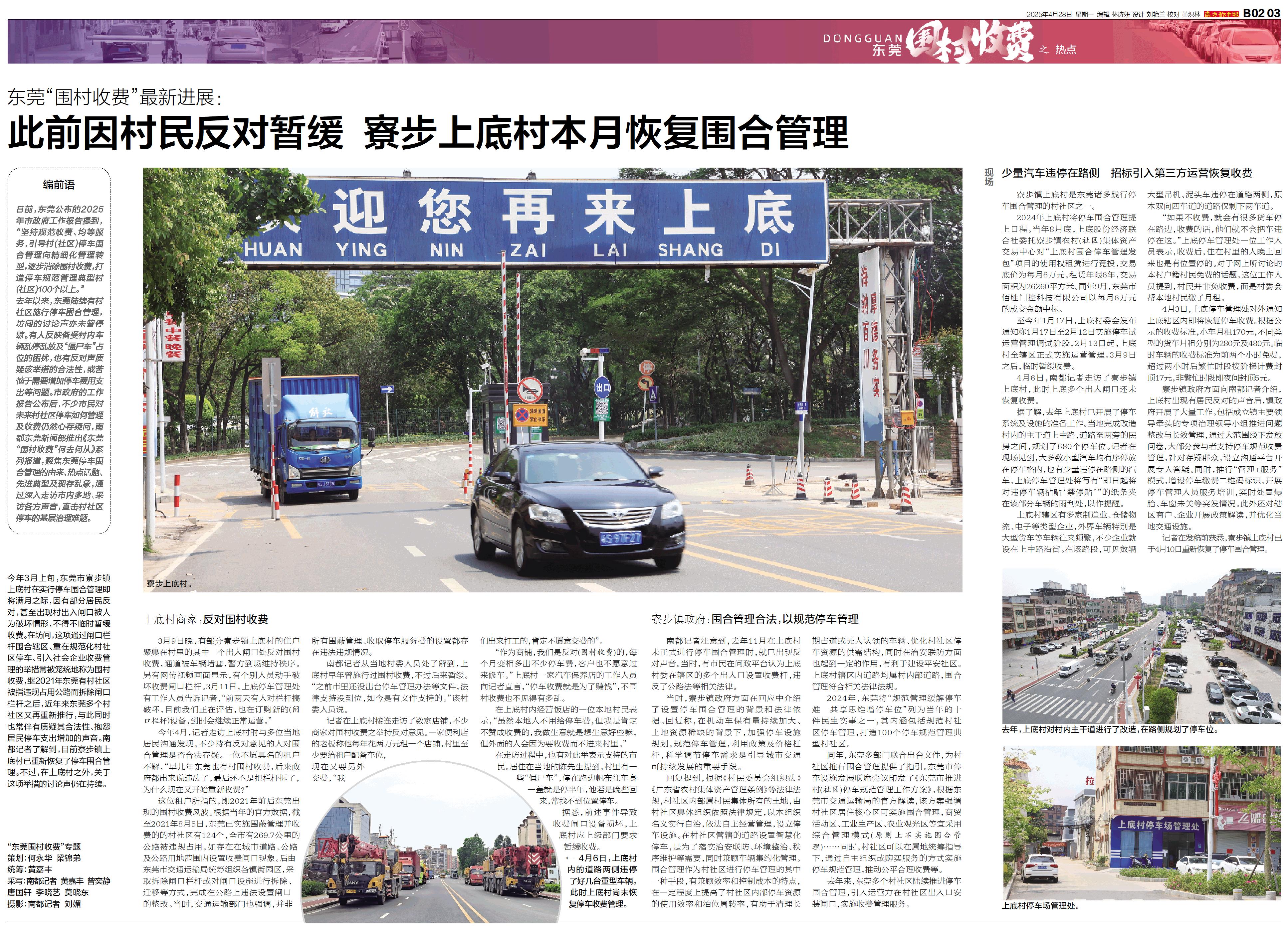 东莞围村收费之热点 编前语 日前,东莞公布的2025年市政府工作报告提到,“坚持规范收费、均等服务,引导村(社区)停车围合管理向精细化管理转型,逐步消除围村收费,打造停车规范管理典型村(社