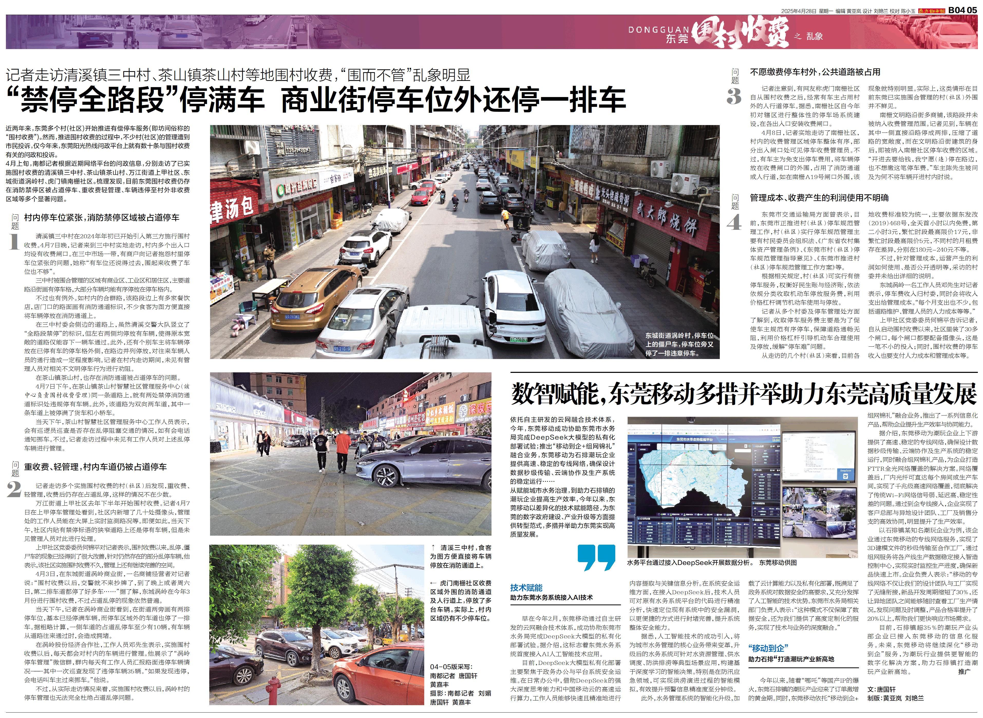 依托自主研发的云网融合技术体系,今年,东莞移动成功协助东莞市水务局完成DeepSeek大模型的私有化部署试验;推出“移动到企+组网锦礼”融合业务,东莞移动为石排潮玩企业提供高速、稳定的专线网络,确