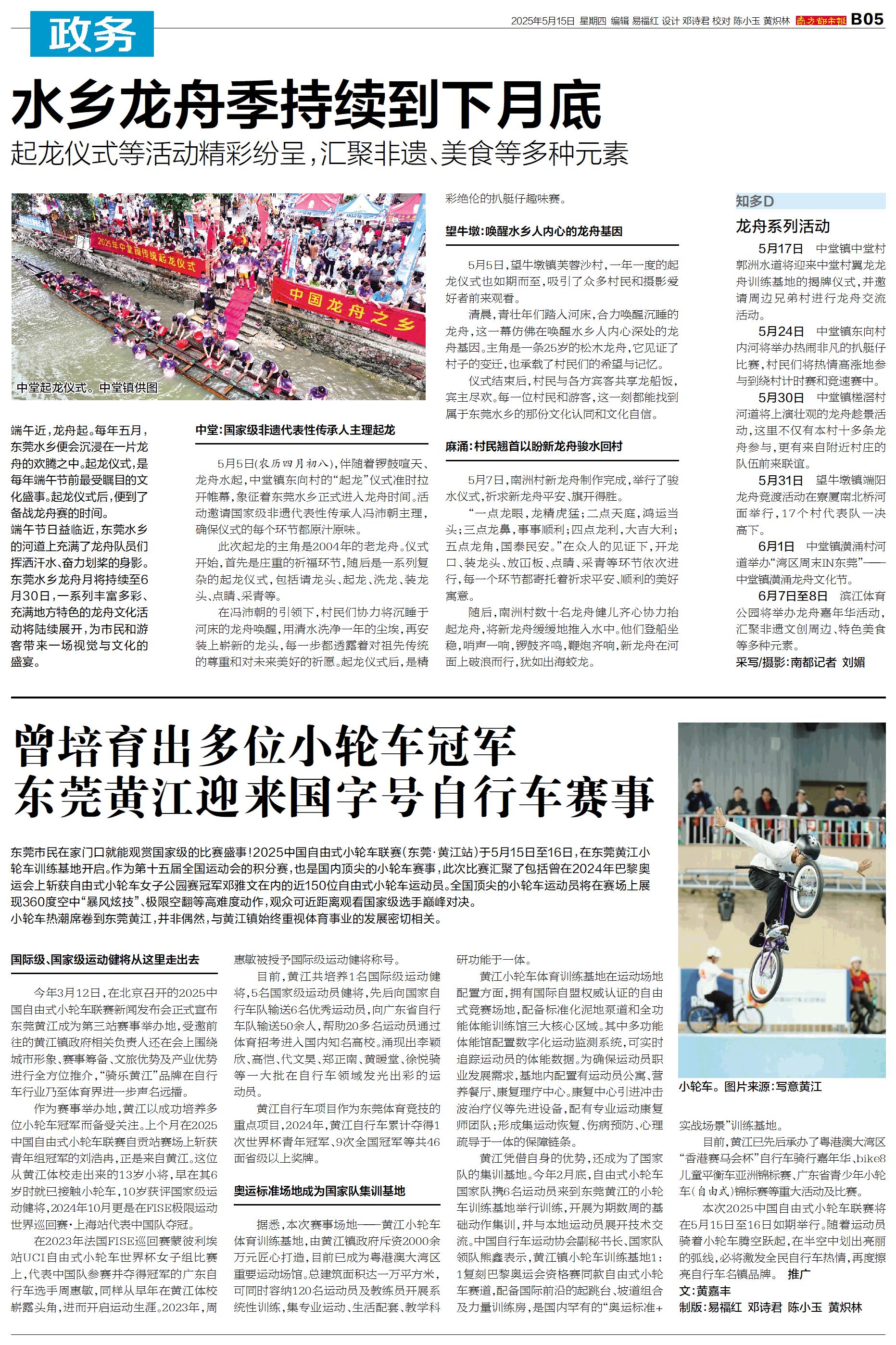 东莞市民在家门口就能观赏国家级的比赛盛事!2025中国自由式小轮车联赛(东莞·黄江站)于5月15日至16日,在东莞黄江小轮车训练基地开启。作为第十五届全国运动会的积分赛,也是国内顶尖的小轮车赛事,此次比赛汇聚了包括曾在2024年巴黎奥运会上斩获自由式小轮车女子公园赛冠军邓雅文在内的近150位自由式小轮车运动员。全国顶尖的小轮车运动员将在赛场上展现360度空中“暴风炫技”、极限空翻等高难度动作,观众可近距离观看国家级选手巅峰对决。