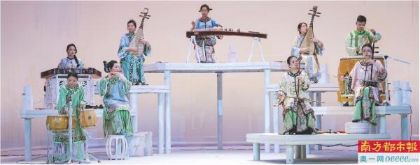 国乐实验剧场《可园可源》就是一部新大众文艺特质鲜明的作品。就创作主体而言,《可园可源》由东莞市文化馆组建的两支非职业团队——东莞民族乐团和东莞舞蹈团领衔,演员平均年龄30岁左右,包括学校老师、非遗代表性传承人、自由职业者、群文工作者、企业家等,这支“混搭”团队以多元身份凝聚合力,实现了真正意义上的“大众共创”。