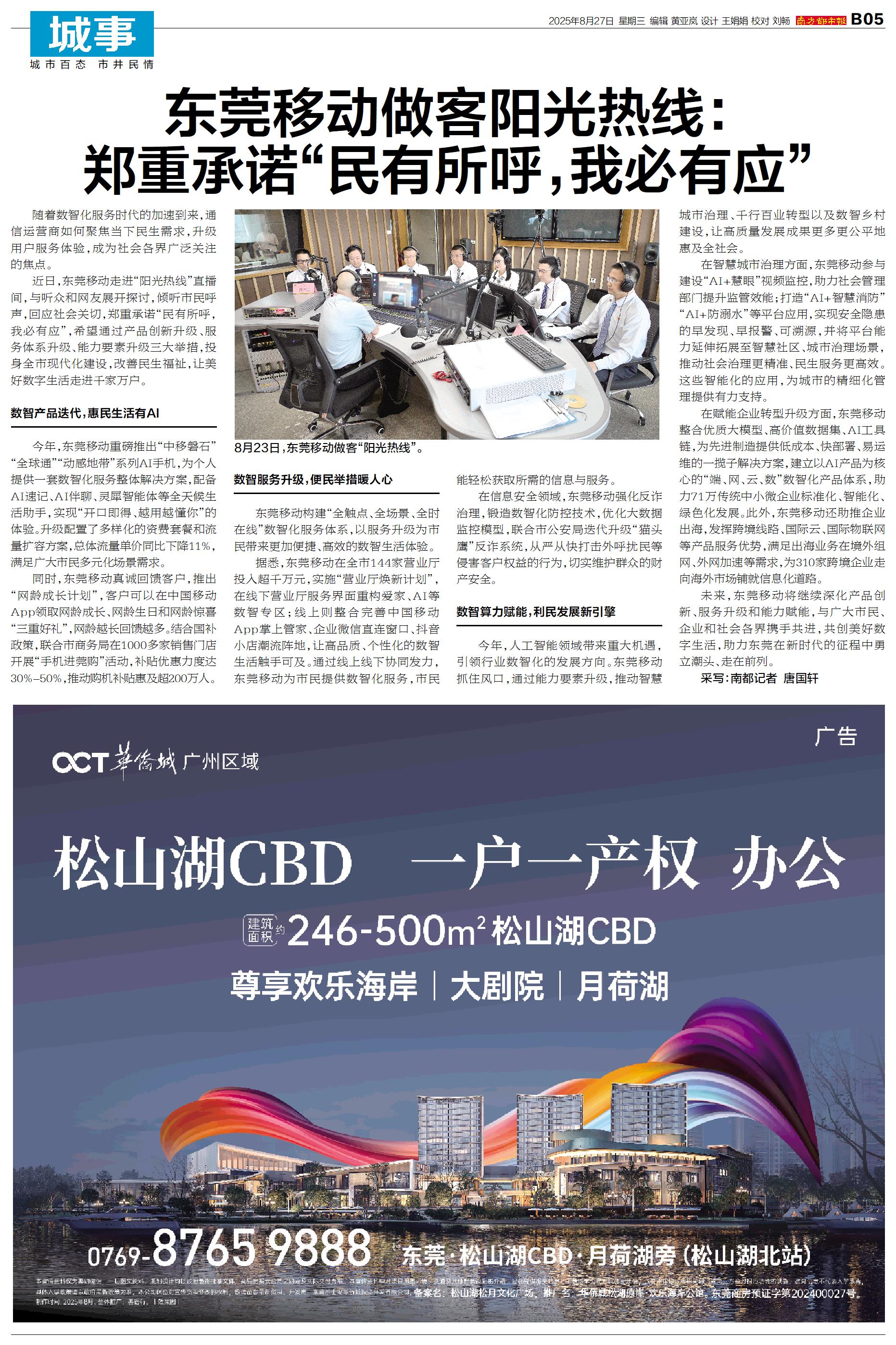 随着数智化服务时代的加速到来,通信运营商如何聚焦当下民生需求,升级用户服务体验,成为社会各界广泛关注的焦点。 近日,东莞移动走进“阳光热线”直播间,与听众和网友展开探讨,倾听市民呼声,回应社会关