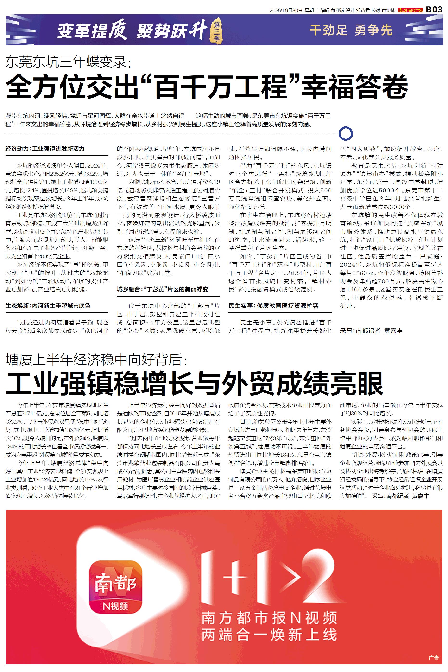 今年上半年,东莞市塘厦镇实现地区生产总值317.11亿元,总量位居全市第5,同比增长3.3%,工业与外贸双双呈现“稳中向好”态势。其中,规上工业增加值136.24亿元,同比增长4.6%。更令人瞩目