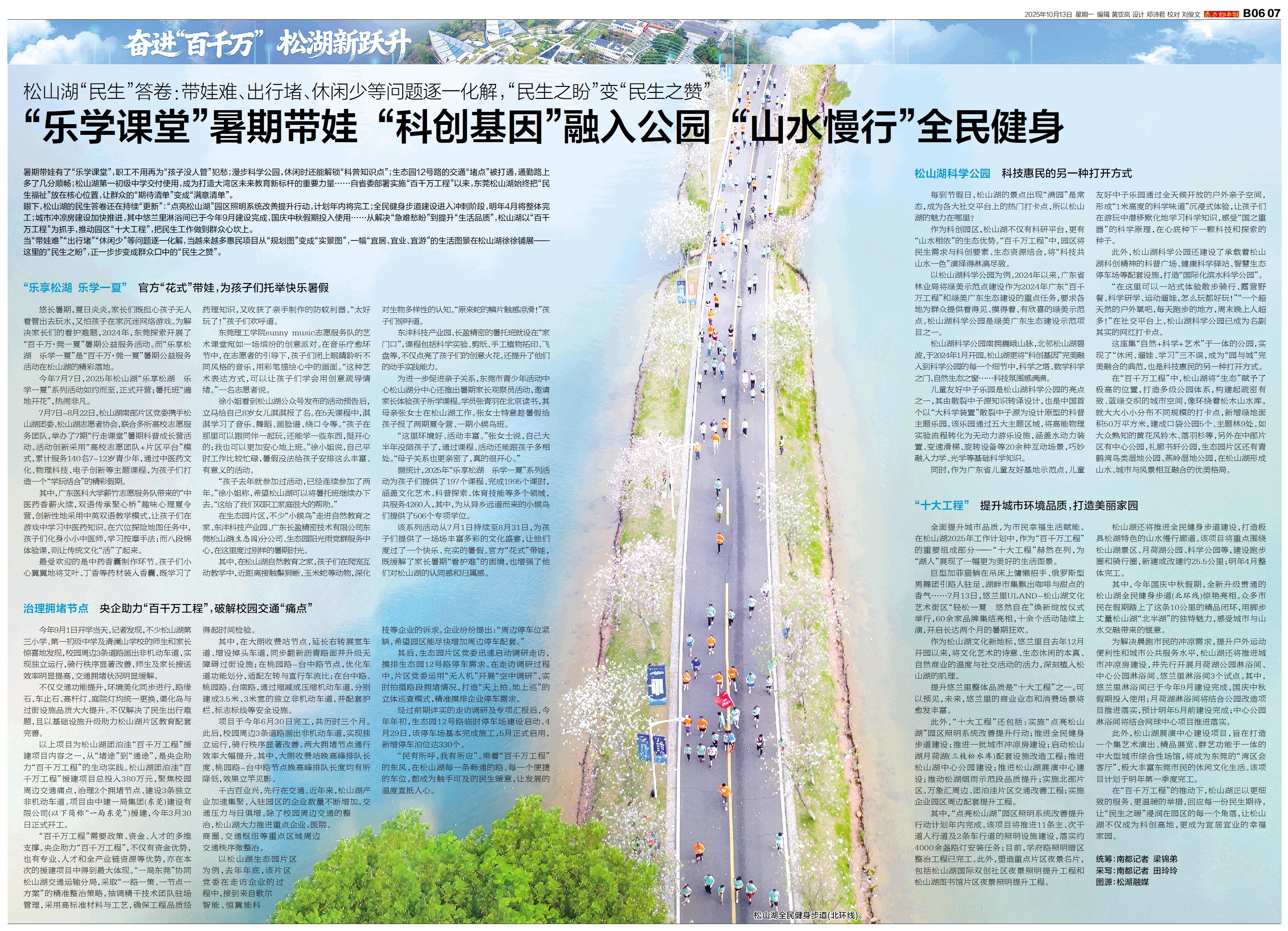 松山湖全民健身步道(北环线)。 暑期带娃有了“乐学课堂”,职工不用再为“孩子没人管”犯愁;漫步科学公园,休闲时还能解锁“科普知识点”;生态园12号路的交通“堵点”被