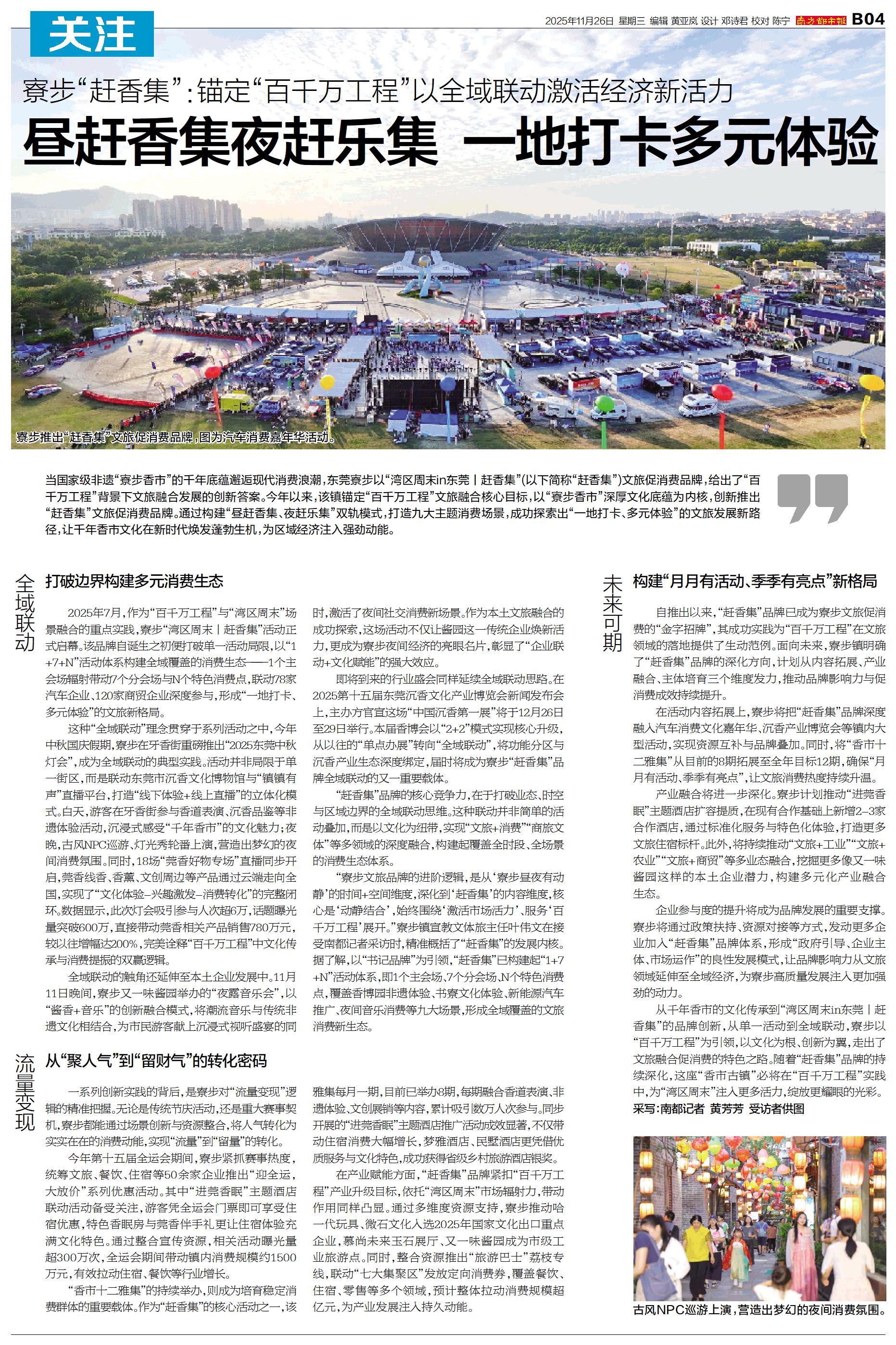 当国家级非遗“寮步香市”的千年底蕴邂逅现代消费浪潮,东莞寮步以“湾区周末in东莞丨赶香集”(以下简称“赶香集”)文旅促消费品牌,给出了“百千万工程”背景下文旅融合发展的创新答案。今年以来,该镇锚定