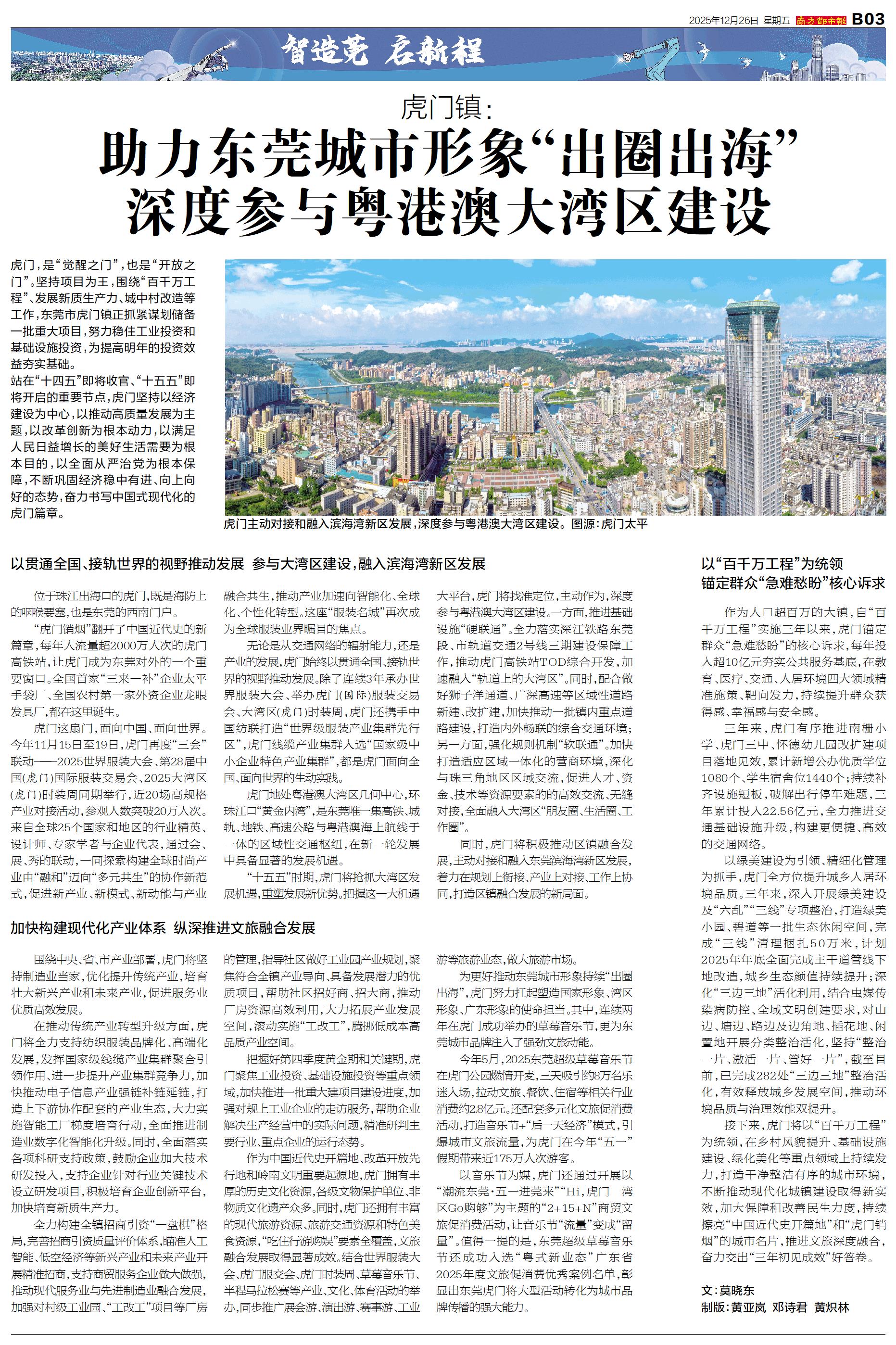虎门,是“觉醒之门”,也是“开放之门”。坚持项目为王,围绕“百千万工程”、发展新质生产力、城中村改造等工作,东莞市虎门镇正抓紧谋划储备一批重大项目,努力稳住工业投资和基础设施投资,为提高明年的投资