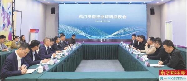 随后,李惠勤一行在虎门电商产业园与电商协会及企业代表座谈,听取全镇电商产业发展情况和未来思路汇报。虎门镇经发局相关负责人现场解读了《虎门镇推动电子商务高质量发展行动方案》等政策文件,与会代表围绕行业发展现状、存在问题及未来方向,提出了一系列建设性意见。