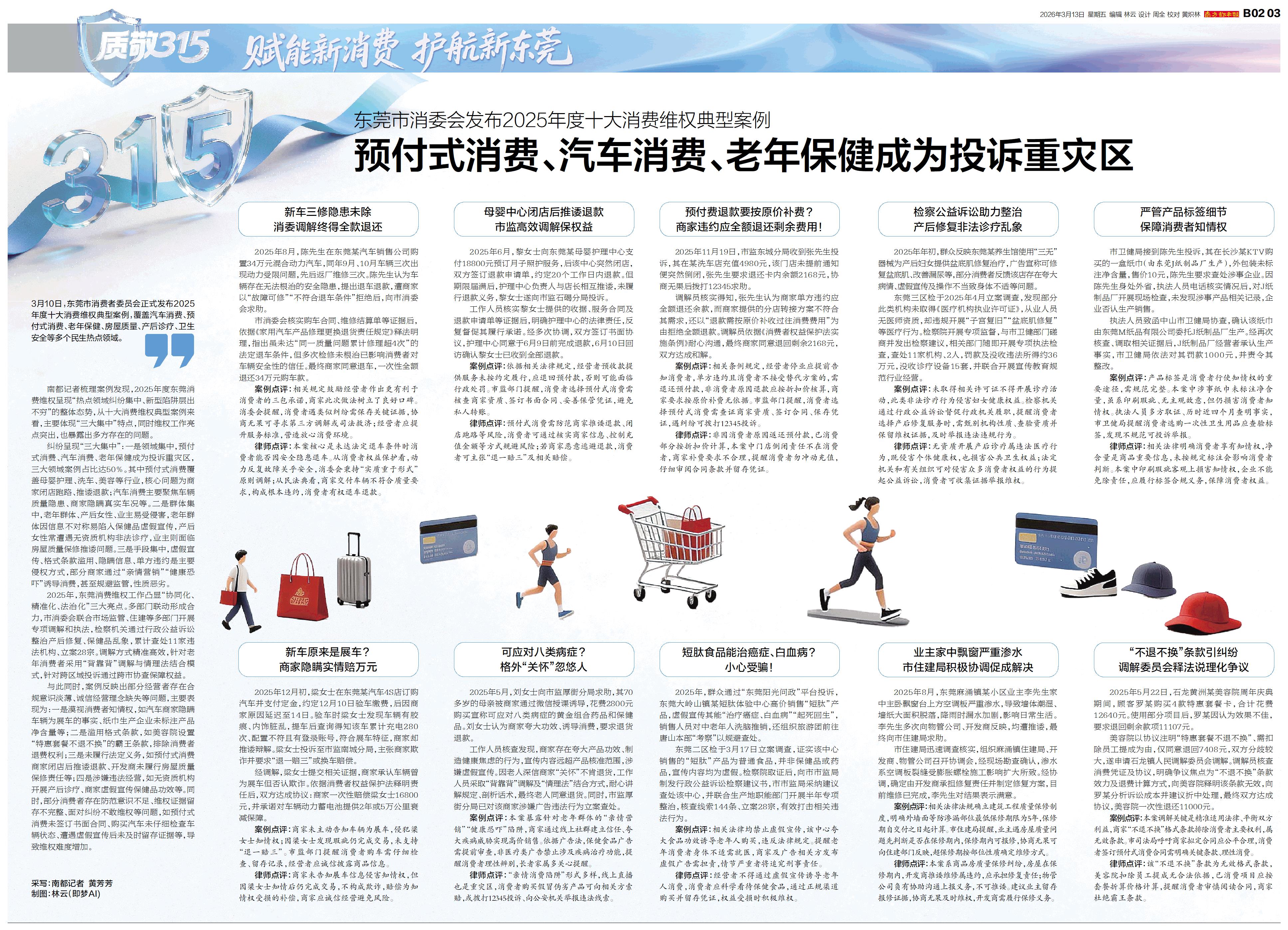 3月10日,东莞市消费者委员会正式发布2025年度十大消费维权典型案例,覆盖汽车消费、预付式消费、老年保健、房屋质量、产后诊疗、卫生安全等多个民生热点领域。 南都记者梳理案例发现,2025年度东
