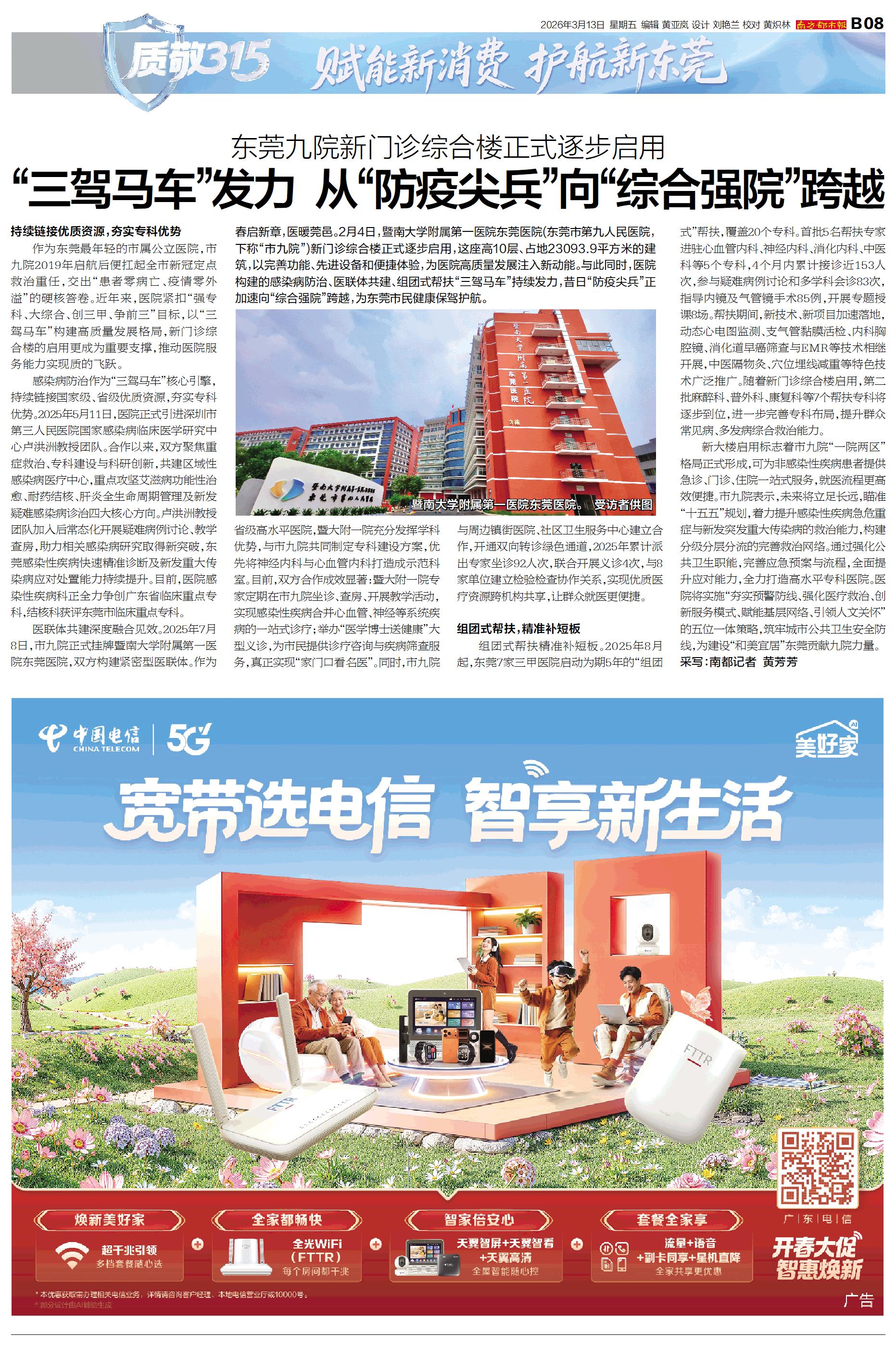 春启新章,医暖莞邑。2月4日,暨南大学附属第一医院东莞医院(东莞市第九人民医院,下称“市九院”)新门诊综合楼正式逐步启用,这座高10层、占地23093.9平方米的建筑,以完善功能、先进设备和便捷体