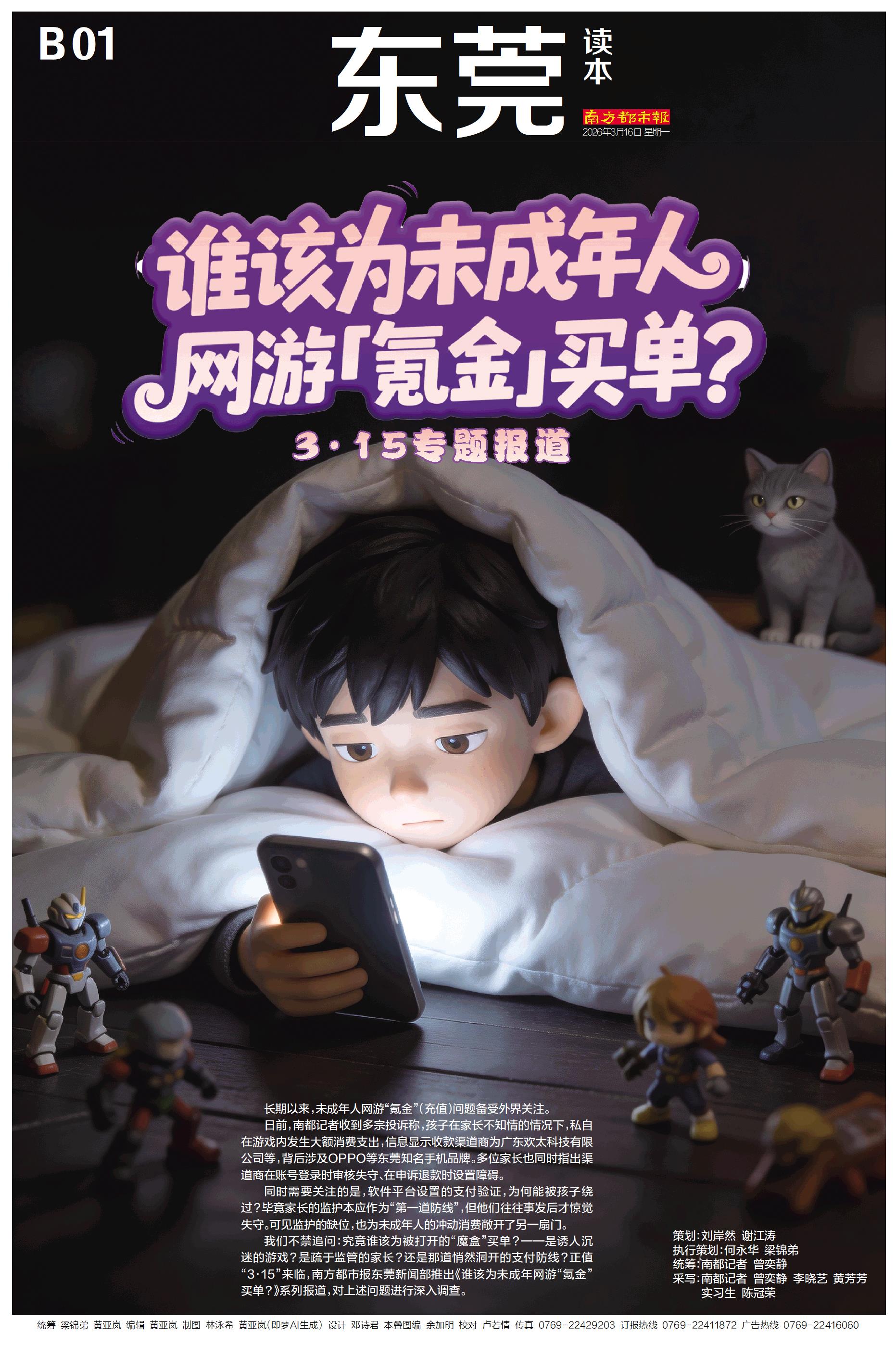长期以来,未成年人网游“氪金”(充值)问题备受外界关注。 日前,南都记者收到多宗投诉称,孩子在家长不知情的情况下,私自在游戏内发生大额消费支出,信息显示收款渠道商为广东欢太科技有限公司等,背后涉