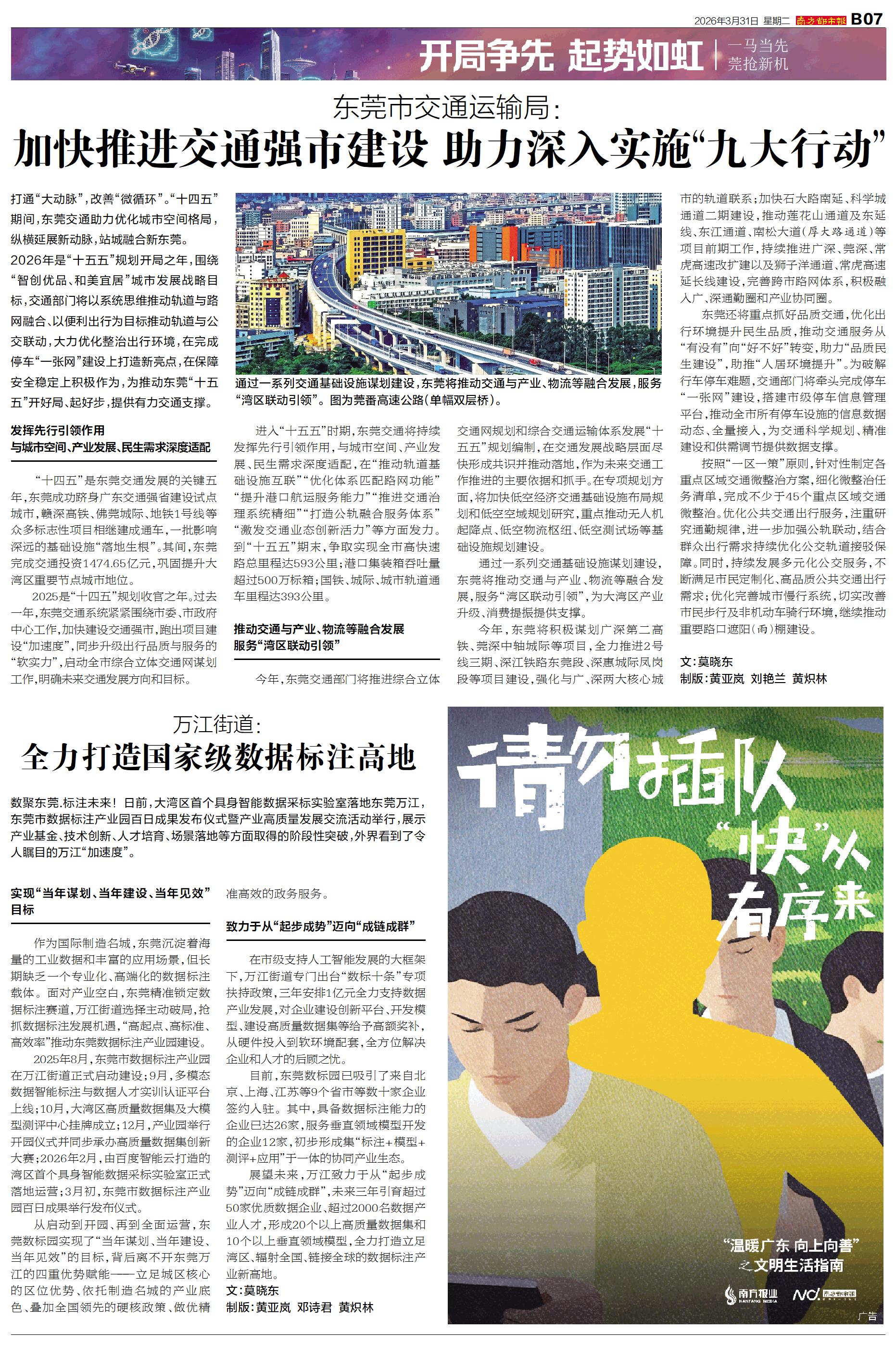 打通“大动脉”,改善“微循环”。“十四五”期间,东莞交通助力优化城市空间格局,纵横延展新动脉,站城融合新东莞。 2026年是“十五五”规划开局之年,围绕“智创优品、和美宜居”城市发展战略目标,交