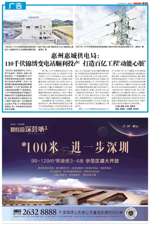惠州惠城供电局:110千伏锦绣变电站顺利投产 打造百亿工程“动能心脏”