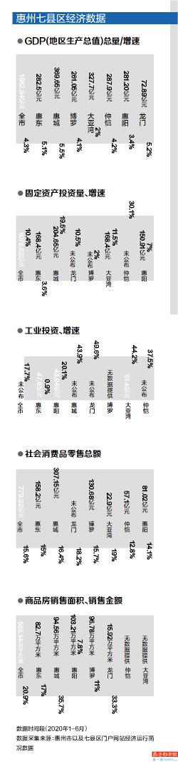 “7个县区中有6个固定资产投资实现正向增长,有6个实现工业投资正向增长,有4个县区GDP增速快过全市水平,有4个县区实现了固定投资增速快过全市水平。”近日,惠州市各个县区公布2020年上半年经济发展数据。由于年初新冠疫情冲击,经历了经济数据陡降的第一季度之后,伴随着基础设施建设的拉动,工业投资的增加,多项经济数据指标已经从谷底开始一路上扬。7个县区中有6个固定资产投资大幅增长,这也让下半年经济强势复苏成为可能。