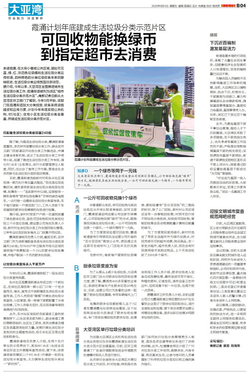走进霞涌,在大街小巷或公共区域,随处可见蓝、绿、红、灰四色垃圾桶和生活垃圾分类宣传标语,四种颜色的分类垃圾收集车来回穿梭收运,生活垃圾分类宣传氛围日渐浓厚。据介绍,今年以来,大亚湾区全面推进城市生活垃