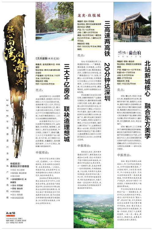 世纪·东江学府 碧桂园·南站新城 恒大华府 金地招商中交·未来理想 龙光·玖悦城 领地·蘭台府 保利锦城 富力·尚悦居 隆生榕溪花园