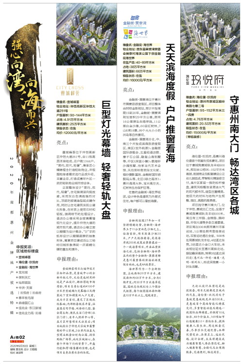 楼盘名:金融街·海世界物业地址:惠东县巽寮湾管委会巽寮村海滨公路下侧金融街海世界在售产品:40-89平方米占地:38万平方米建筑面积:66万平方米销售状态:在售均价:16000元/平方米亮点:金融街·