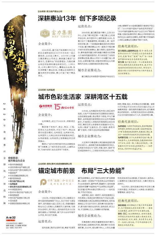 惠州市德威集团 深圳市泰丰地产有限公司 佳兆业地产(惠州)有限公司 融创地产 合生创展集团有限公司 星河控股集团 富力地产惠汕公司 灿邦集团 保利(惠州)投资发展有限公司 中洲控股(惠州) 惠州市中海