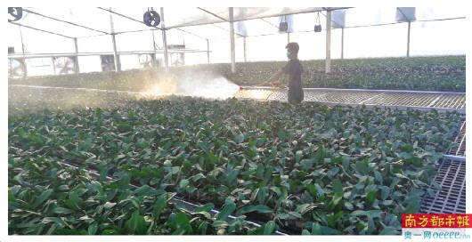 在边建边用的种植大棚里,工人们有的正在把兰花苗栽入放有海藻泥的培养皿里,有的给已经长成半大的蝴蝶兰喷水。大棚里温度和湿度都智能控制,白天25摄氏度,晚上18摄氏度,空中还放置有棉被,等冬天气候变冷时保温用。在旁边的大棚里,还有铁皮石斛和姜荷花。