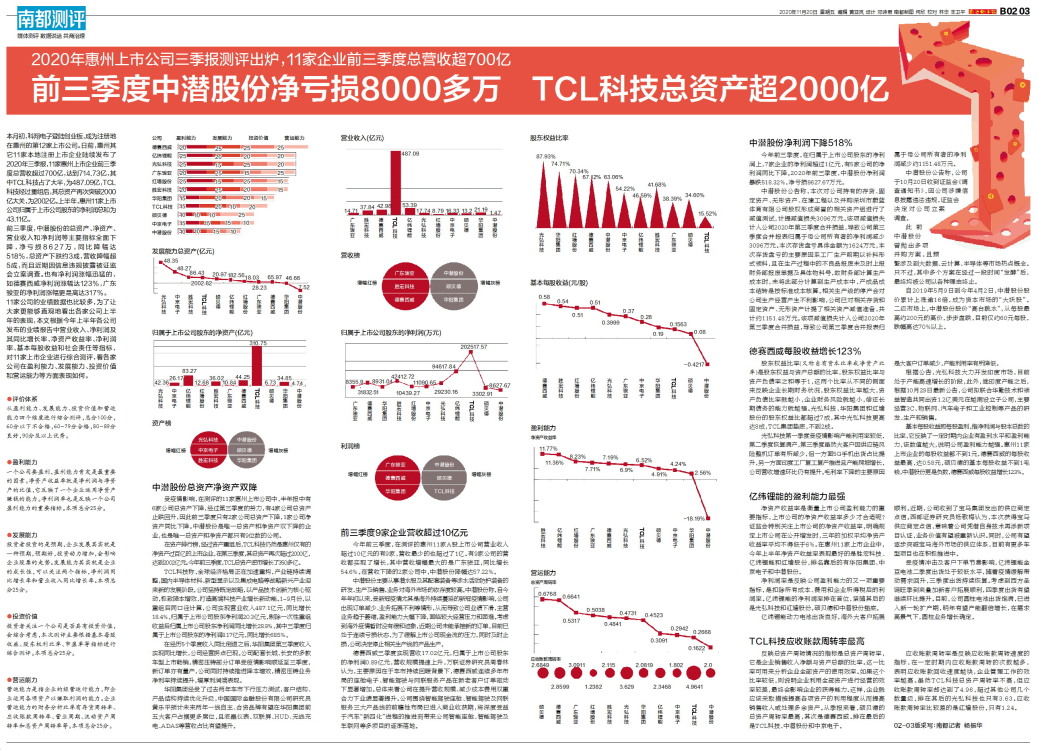 前三季度中潜股份净亏损8000多万 TCL科技总资产超2000亿