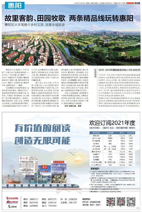 惠阳区大手笔推介“乡村文旅”,以更大决心发展全域旅游。11月14日,“千年归善·活力惠阳”——2020广东惠阳乡村文旅推介暨颁奖晚会举行。惠阳八景、惠阳旅游手信LOGO、惠阳十大旅游手信、惠阳老字号、