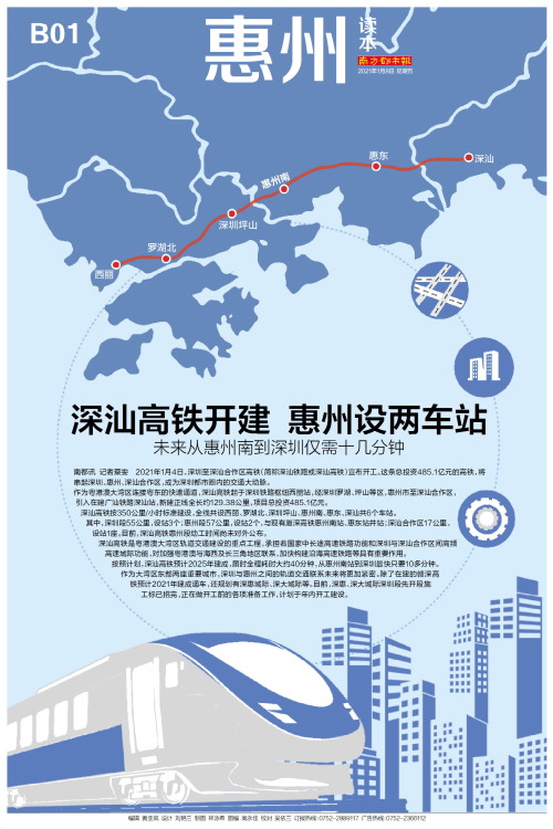 南都讯 记者蔡雯 2021年1月4日,深圳至深汕合作区高铁(简称深汕铁路或深汕高铁)宣布开工。这条总投资485.1亿元的高铁,将串起深圳、惠州、深汕合作区,成为深圳都市圈内的交通大动脉。作为粤港澳大湾