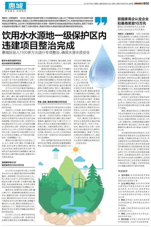 南都讯 记者杨振华 1月4日,惠城区环境保护督察工作协调联络组办公室公示了《惠城区中央生态环境保护督察整改任务销号评估报告》,惠城区认真对照整改措施清单内的整改任务开展销号工作,并组织相关单位对整改
