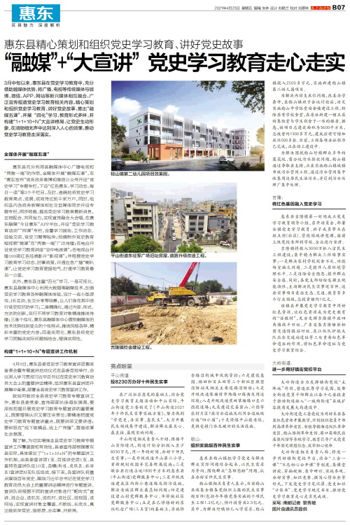 3月中旬以来,惠东县在党史学习教育中,充分借助融媒体优势,将广播、电视等传统媒体与微博、微信、APP、网站等新兴媒体相互融合,广泛宣传报道党史学习教育相关内容。精心策划和组织党史学习教育、讲好党史故事