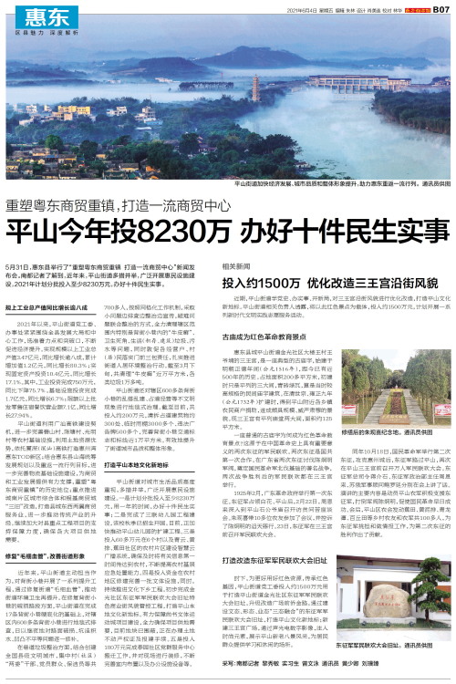 5月31日,惠东县举行了“重塑粤东商贸重镇 打造一流商贸中心”新闻发布会。南都记者了解到,近年来,平山街道多措并举,广泛开展惠民设施建设,2021年计划分批投入至少8230万元,办好十件民生实事。