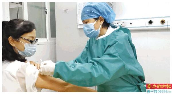 医护人员正在为市民接种疫苗。