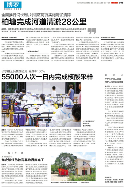 南都讯 6月9日下午,博罗县长宁镇正式开始全员核酸检测工作,在24小时内,长宁镇累计完成核酸检测采样55000人次,超过长宁镇常住人口数量,完成率100%。在连夜召开协调会后,长宁镇党政领导干部紧锣密