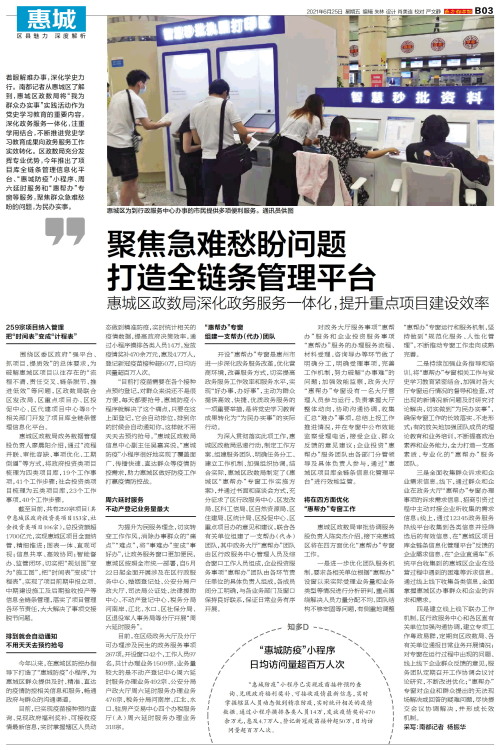 着眼解难办事,深化学史力行。南都记者从惠城区了解到,惠城区政数局将“我为群众办实事”实践活动作为党史学习教育的重要内容,深化政务服务一体化,注重学用结合,不断推进党史学习教育成果向政务服务工作实效