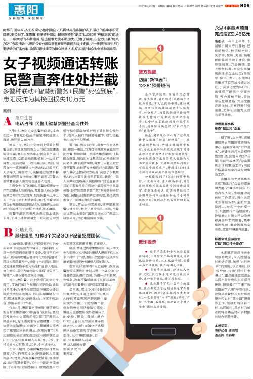 南都讯 近年来,人们发现:小偷小摸的少了,网络电信诈骗的多了,骗子的作案手段更隐蔽、更狡猾了。在惠阳,有多警种联动、智慧新警务“助攻”以及民警“死磕到底”的决心……破案时间不断缩减,阻击犯罪力度不