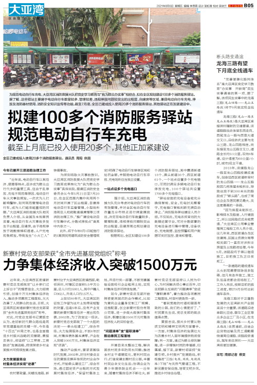 为规范电动自行车充电,大亚湾区消防救援大队把党史学习教育与“我为群众办实事”相结合,拟在全区规划建设100多个消防服务驿站。据了解,这些驿站主要建于电动自行车数量较多、管理较差、违规停放问题较突出