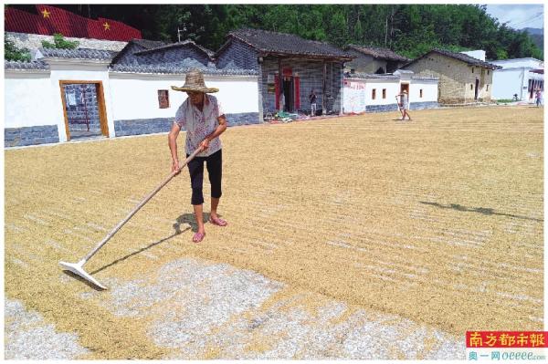 村民们在空地上晾晒稻谷。 通讯员供图