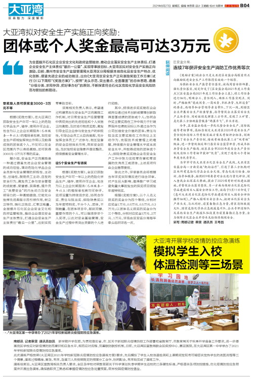 为全面提升石化区企业安全文化和政府监管能效,推动企业落实安全生产主体责任,打通企业安全生产主体责任“最后一公里”,实现零事故目标,大亚湾区拟对安全生产实施正向激励。日前,惠州市安全生产监督管理局大