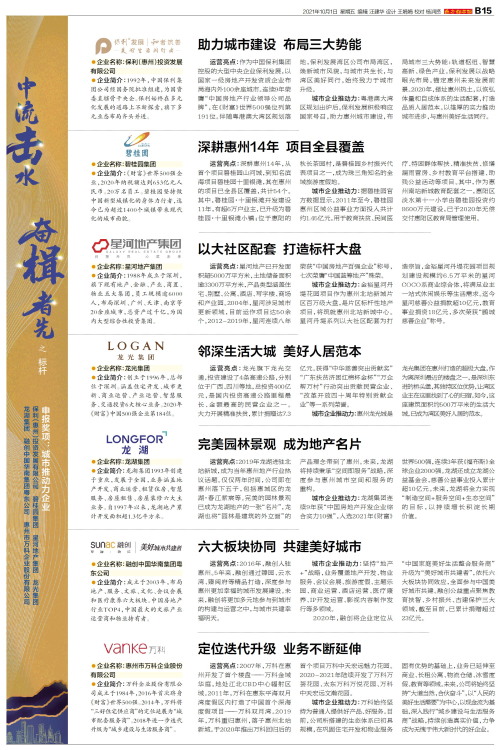 标杆保利(惠州)投资发展有限公司 碧桂园集团 星河地产集团 龙光集团龙湖集团 融创中国华南集团粤东公司 惠州市万科企业股份有限公司 助力城市建设 布局三大势能 企业名称:保利(惠州)投资发展有