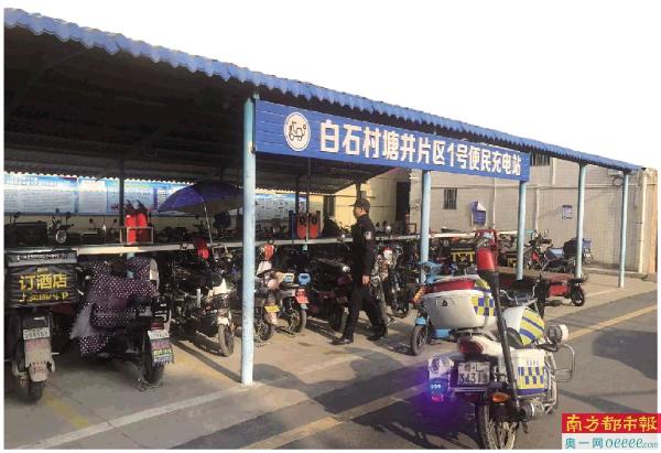 白石村塘井片区1号便民充电站,电动车整齐停放。 通讯员供图