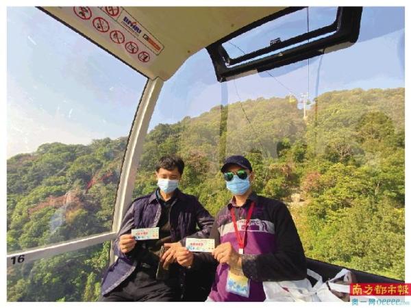 市民兴奋地体验罗浮山索道。