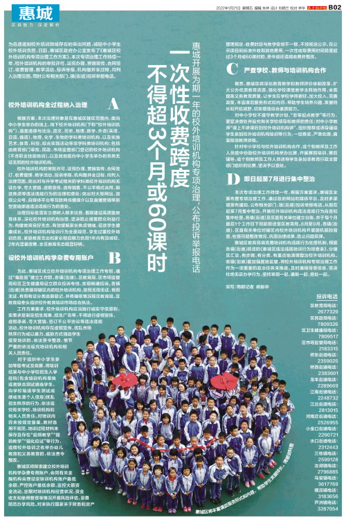 为迅速遏制校外培训领域存在的突出问题,减轻中小学生校外培训负担,日前,惠城区政府办公室发布了《惠城区校外培训机构专项治理工作方案》,本次专项治理工作持续一年,校外培训机构的审批许可、证照办理、营销