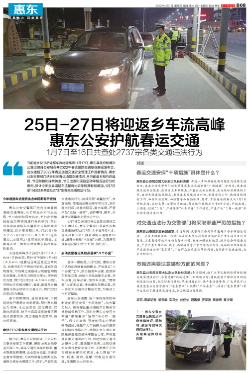 25日-27日将迎返乡车流高峰惠东公安护航春运交通
