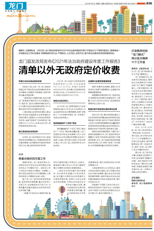 南都讯 记者郭秋成 2月28日,龙门县发改局发布《2021年法治政府建设年度工作报告》(以下简称《报告》),强调将进一步加强法治工作队伍建设,统筹推进科学立法、严格执法、公正司法、全民守法,着力将