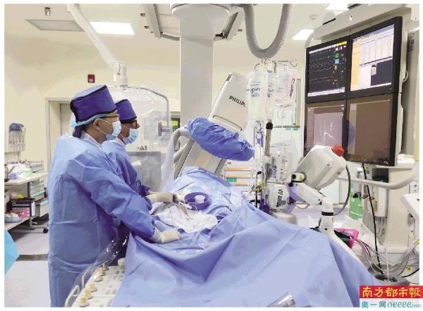 惠东县人民医院主任医师廖驭国团队正在为患者行神经介入手术。