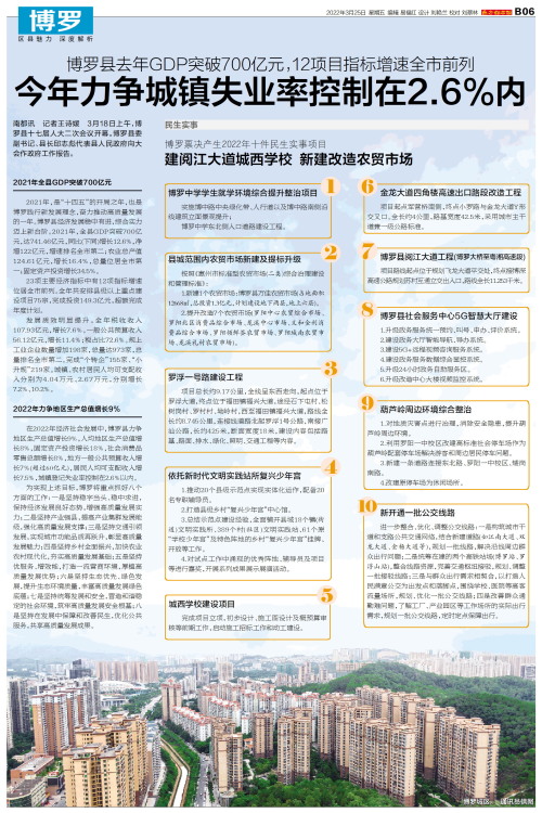 南都讯 记者王诗媛 3月18日上午,博罗县十七届人大二次会议开幕。博罗县委副书记、县长邱志彪代表县人民政府向大会作政府工作报告。2021年全县GDP突破700亿元 2021年,是“十四五”的